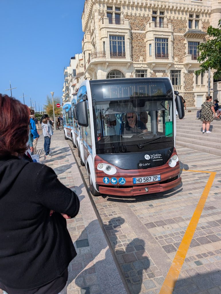 Das ist einer der Gratisbusse die in Les Sables D’Olonne fahren, nur das neueste ist gut genug. Respekt für diese Dienstleistung.