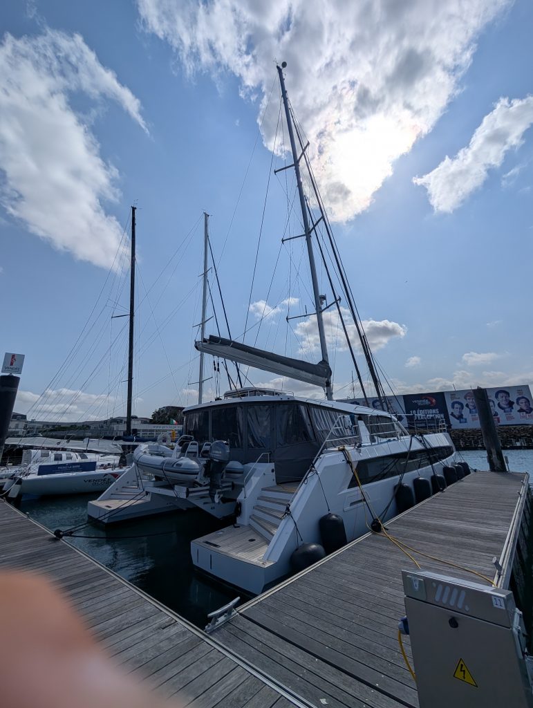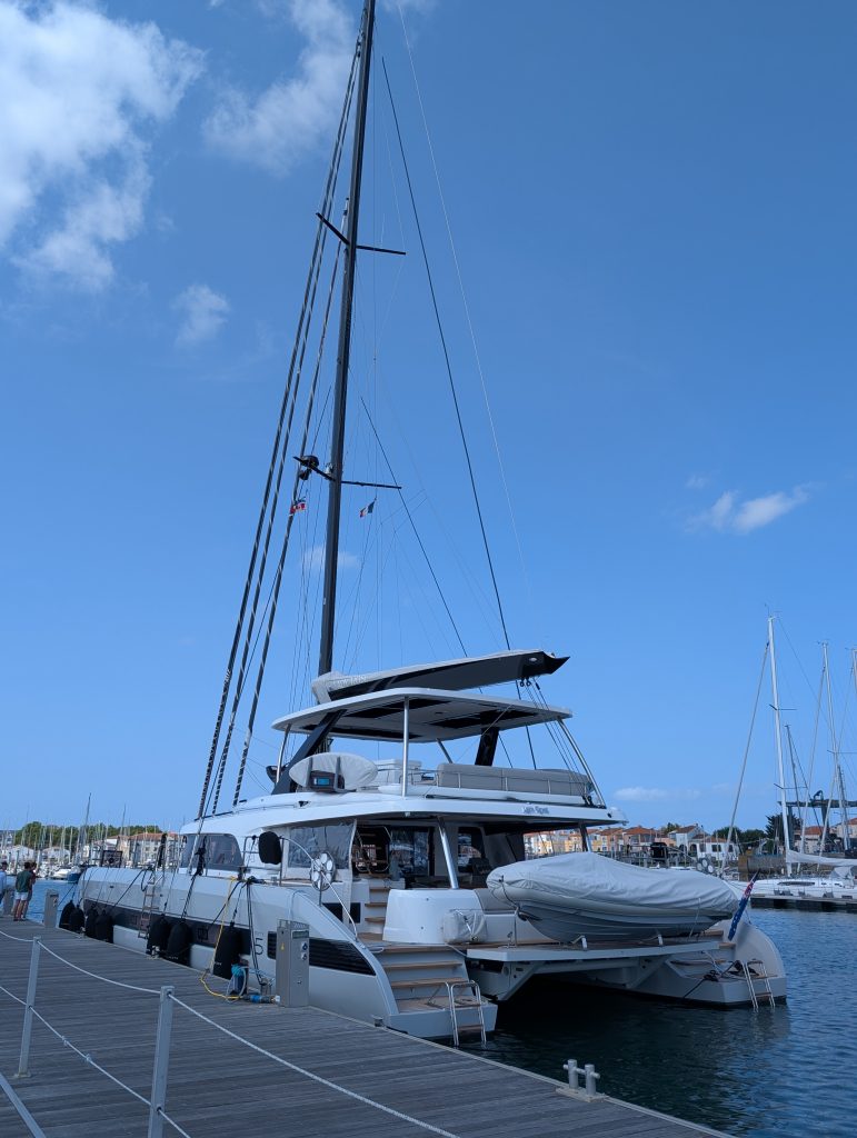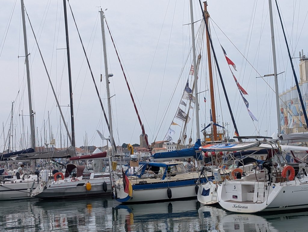 Am 20. August haben wir dann einen kleinen Schlag nach Les Sables D’Olonne gemacht, es waren nur 21 sm. Wir waren schon vor 15 Uhr dort und haben im kleineren Hafen, der direkt an der Stadt liegt festgemacht. Der Hafen war von den Liegegebühren günstig und zudem war das Wäsche waschen umsonst, also Wäsche rein, so eine Gelegenheit kommt nicht so oft. Wir haben uns dann abends noch ins Leben gestürtzt und uns in der Nähe umgesehen, wir sind mit der Fähre auf die andere Seite des Kanals gefahren und dort war ein Künstler Markt der sehr schön war, leider saß uns der laufende Trockner im Genick, weil eine andere Frau diesen auch benutzen wollte. Also zurück und wir kamen fast pünktlich um die Wäsche abzuholen. Was eine Nebenerscheinung des Hafens war, die laute Musik aus den Kneipen und Restaurants, bis um 1:30 Uhr am Morgen. Ein Abend wurden wir von drei Bands auf drei Bühnen gleichzeitig beschallt, aber das ist halt so, und nimmt man so hin, hilft eh nix wenn man sich ärgert. Auch hier gab es ja die kostenlosen Busse, die haben wir natürlich gerne genutzt, und sind in den großen Hafen gefahren und haben uns dort umgesehen. Dort ist auch die Firma Privilege, die Katamarane bauen, mit so einem Katamaran, hatten wir das Glück mit zwei sehr lieben Eignern von Cuba in die Domenikanische Republik zu fahren, es war ein sehr schöner und harmonischer Törn Anfang 2018. Dort im Hafen liegen auch das ein oder andere Boot von der Vendee Globe die Boris Hermann mit der Malizia im letzten Jahr mitgesegelt ist. Das sind schon beeindruckende Boote mit Ihren Foils. Am nächsten Tag sind wir dann wieder auf die andere Seite des Kanals gefahren, diesmal nicht mit der Fähre sondern mit dem kostenlosen Bus, bis zur Enstation und sind dann zu Fuß weiter bis zum Leuchturm und dann durch Wohngebiete wieder zurück zum Bus. Wir waren dann noch im Supermarkt und Heike noch beim Friseur. Dann ging schon wieder die Planung für die nächste Etappe los :Route in Plotter eingeben, Gezeiten und Stömungen checken und eine Abfahrtszeit festlegen. Dazu dann im nächsten Blog mehr wann es wohin geht, lasst euch überraschen.