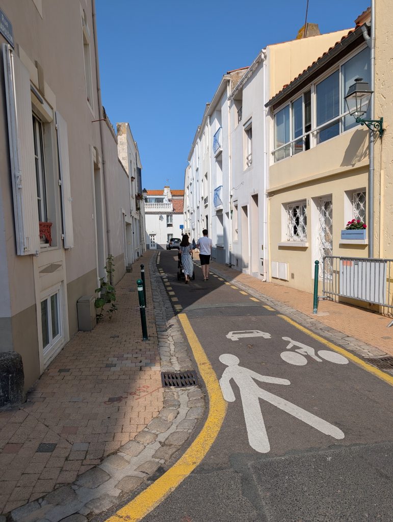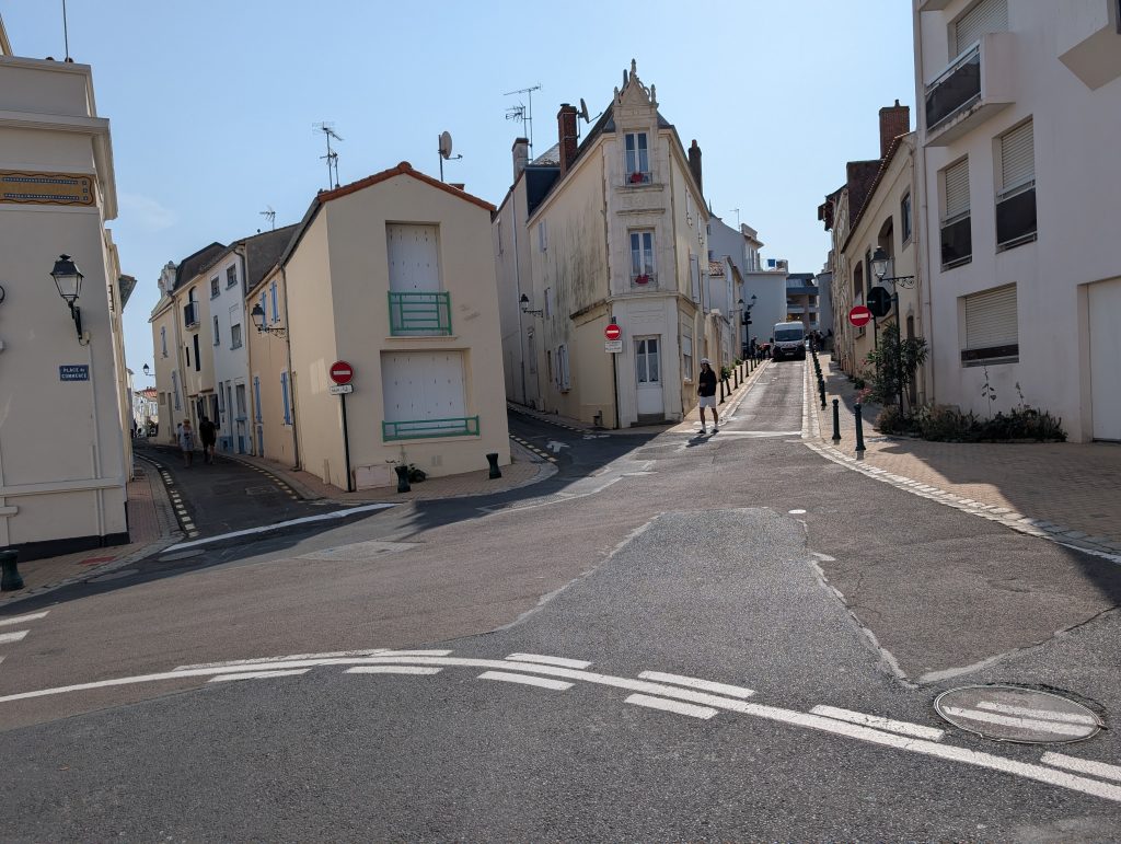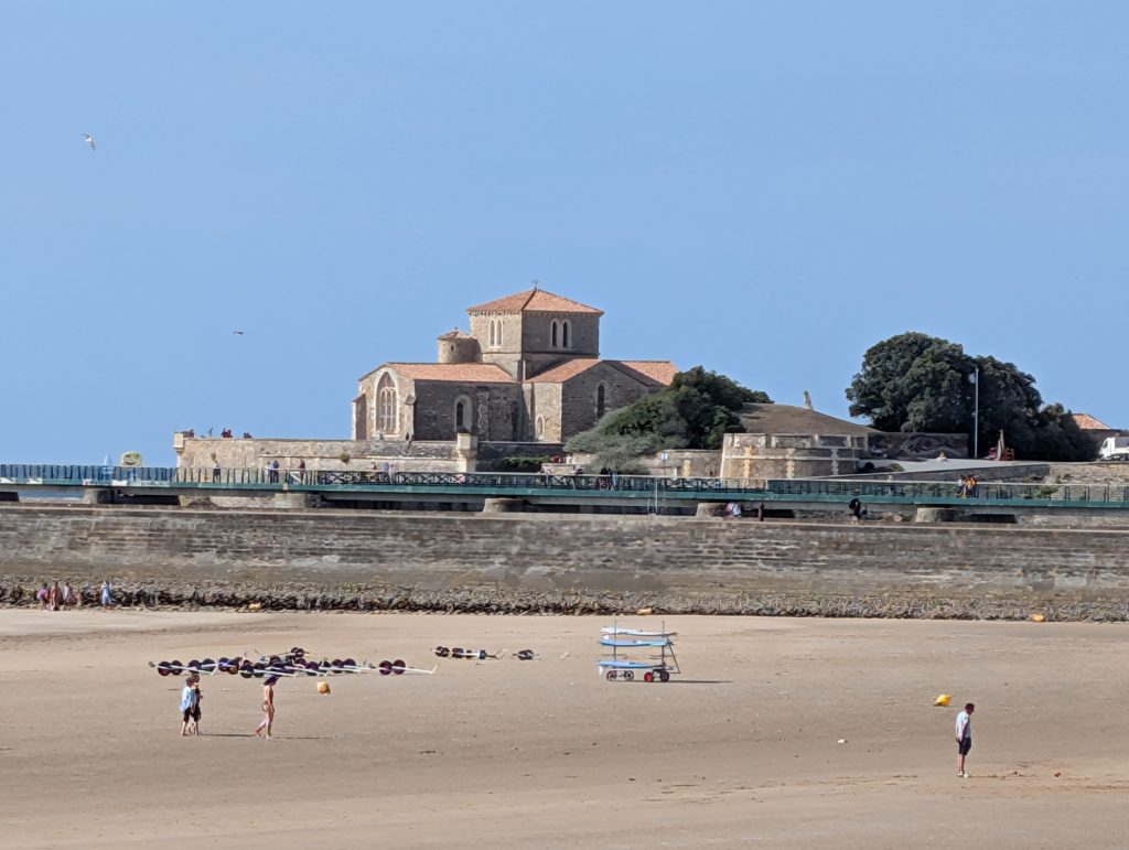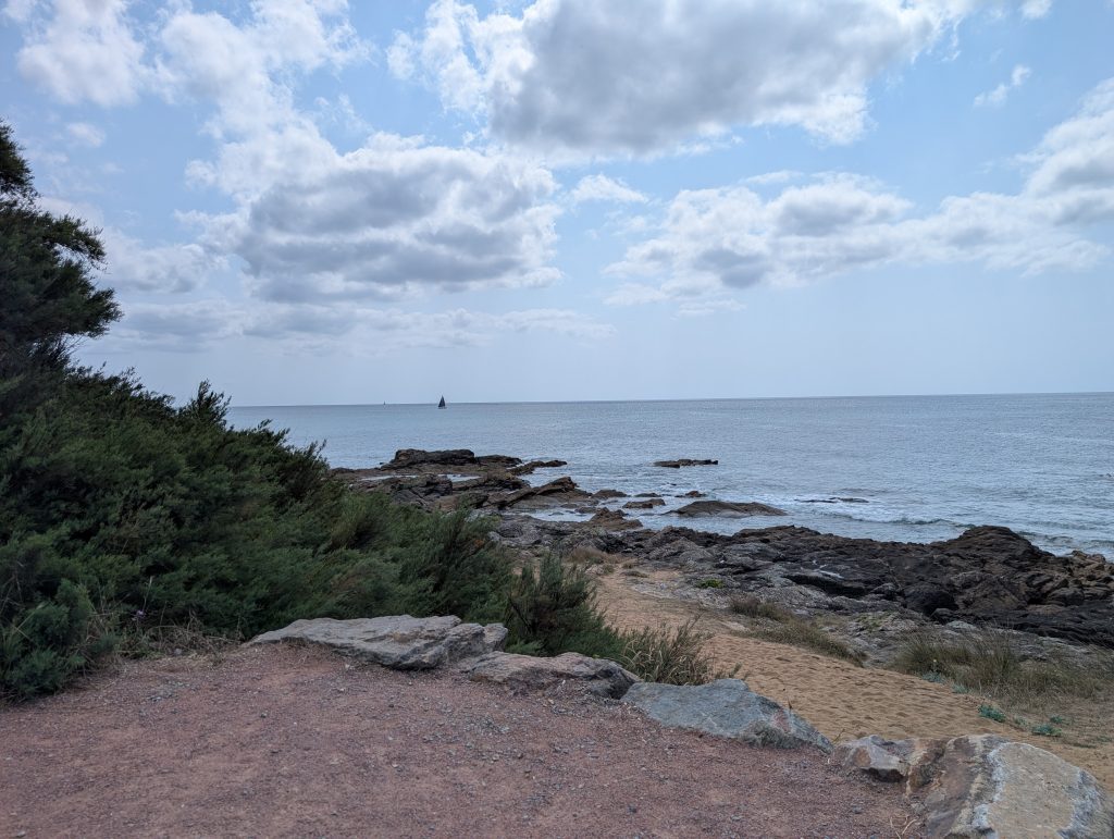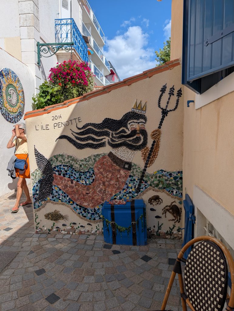 Am 17. August sind wir nach Saint-Gilles-Croix-de-Vie, oder kurz Port La Vie gefahren. Der Trip war 35 sm lang und verlief eigentlich unspektakulär, die Zeit segeln und motoren teilten sich je zu Hälfte auf. Etwa 1,5 Stunden vor Niedrigwasser sind wir im Hafen eingelaufen, die Stömung war erheblich, weil das ein Fluss ist. Da läuft bei Ebbe das Wasser rein und bei Flut wieder heraus, aber mit einer deutlich höheren Fliessgeschwindigkeit wie in anderen Häfen, dies war in Benodet das Selbe. Wir haben einen Liegeplatz im Voraus gebucht und an dem Steg seitlich festgemacht. An diesem Abend blieben wir auf dem Boot und haben es uns dort gemütlich gemacht. Am nächsten Tag sind wir in die Stadt gegangen und sind durch die Straßen geschlendert. Wir laufen gerne durch die Straßen, in denen die Leute wohnen, dort sieht man das wirkliche Leben in einer Stadt. Natürlich durfte ein Besuch des Supermarktes und der Fußgängerzone nicht fehlen. Die Stadt und die Gegend dort ist sehr schön, wirklich ein Besuch wert. Hier in Saint-Gilles-Croix-la Vie lebte ein Mann mit dem Nachnamen Bénéteau der hat irgendwann mal auf die Fischerboote ein Segel konstruiert damit die nicht mehr rudern mussten, so sind dann die Segelboote entstanden die heute noch unter dem Namen Bénéteau gebaut werden.