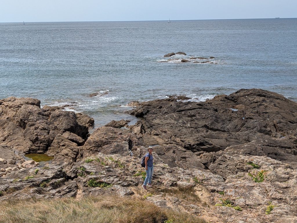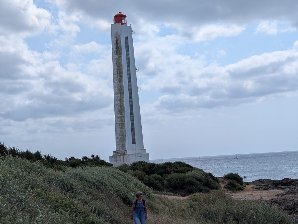 Das ist der Leuchtturm (das weisse im Hintergrund) von Les Sables D’Olonne und Bilder vom Spaziergang an der Küste.