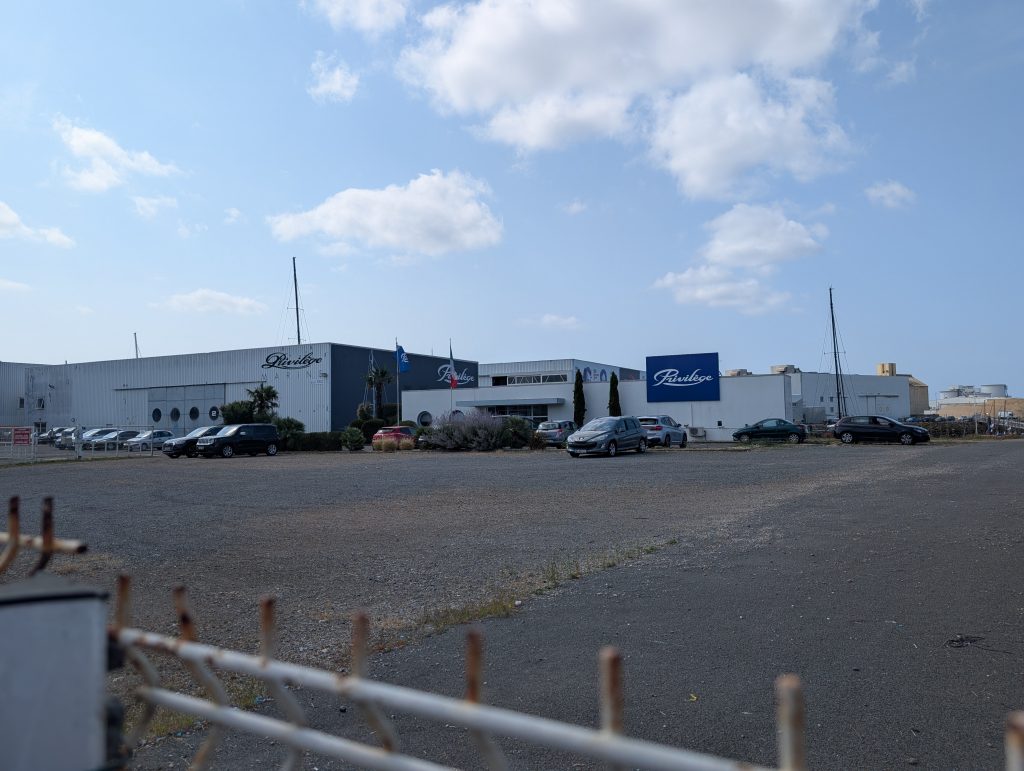 Das ist das Firmengebäude von Privilege, die stellen sehr hochwertige Karamarane her. Wir hatten das Glück, einmal auf einem solche mitsegeln zu dürfen, danke Ingrid und Wolfgang.