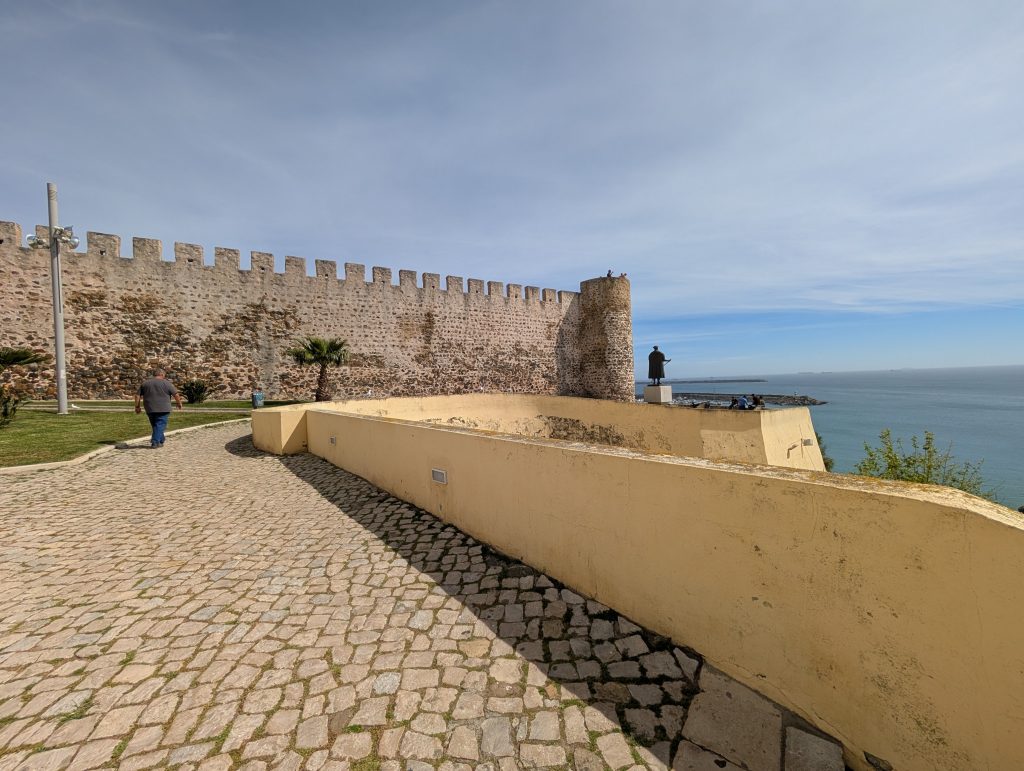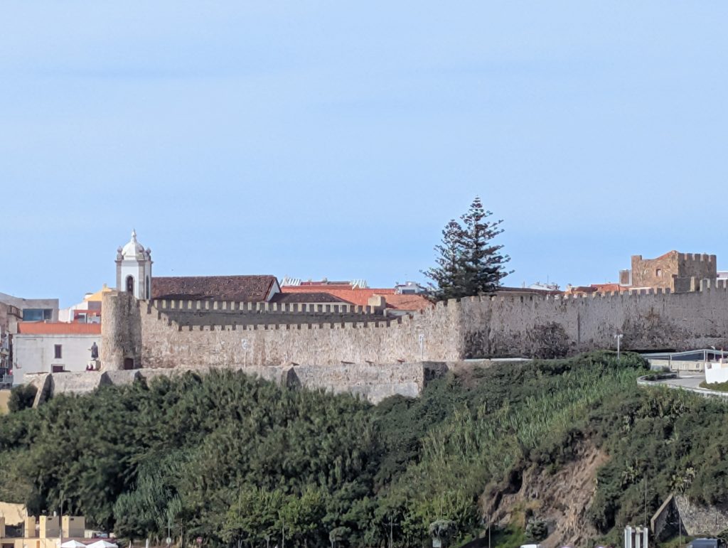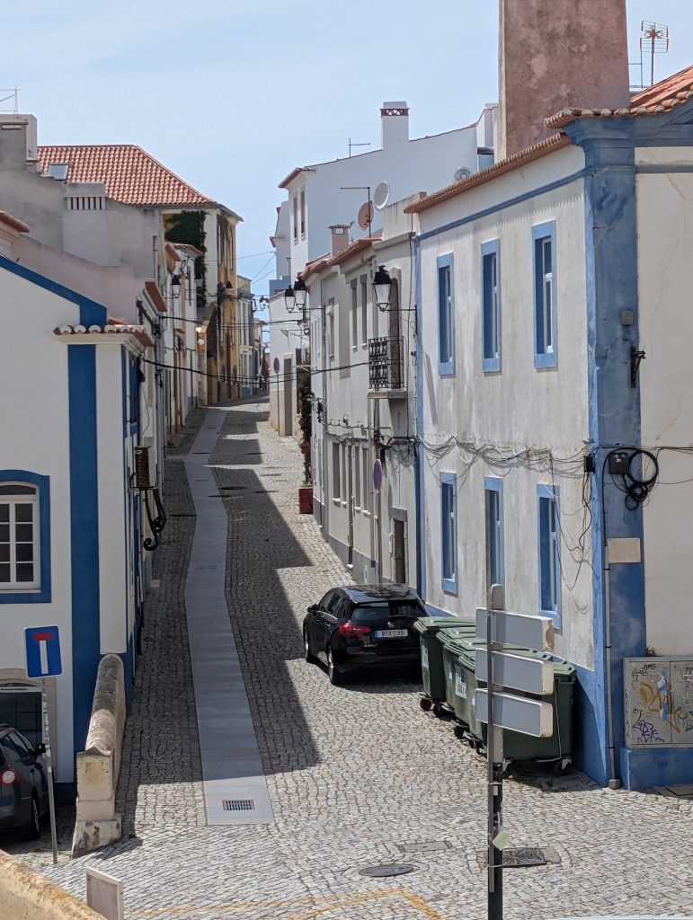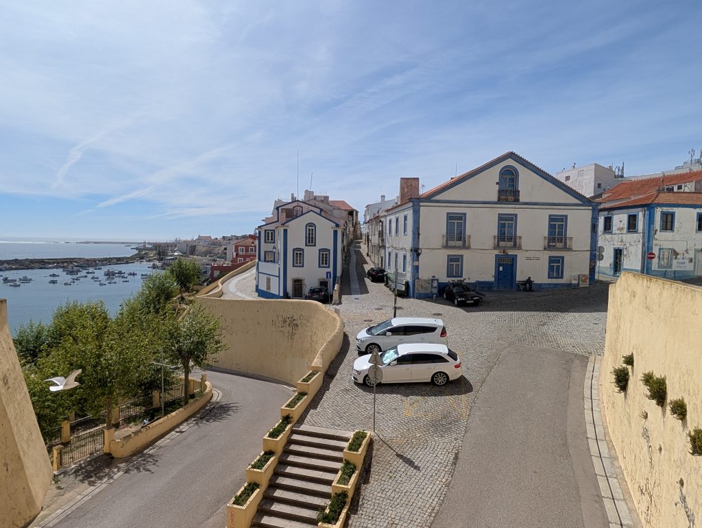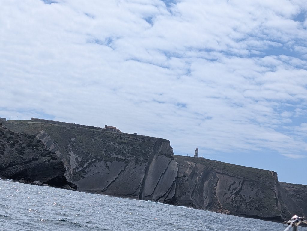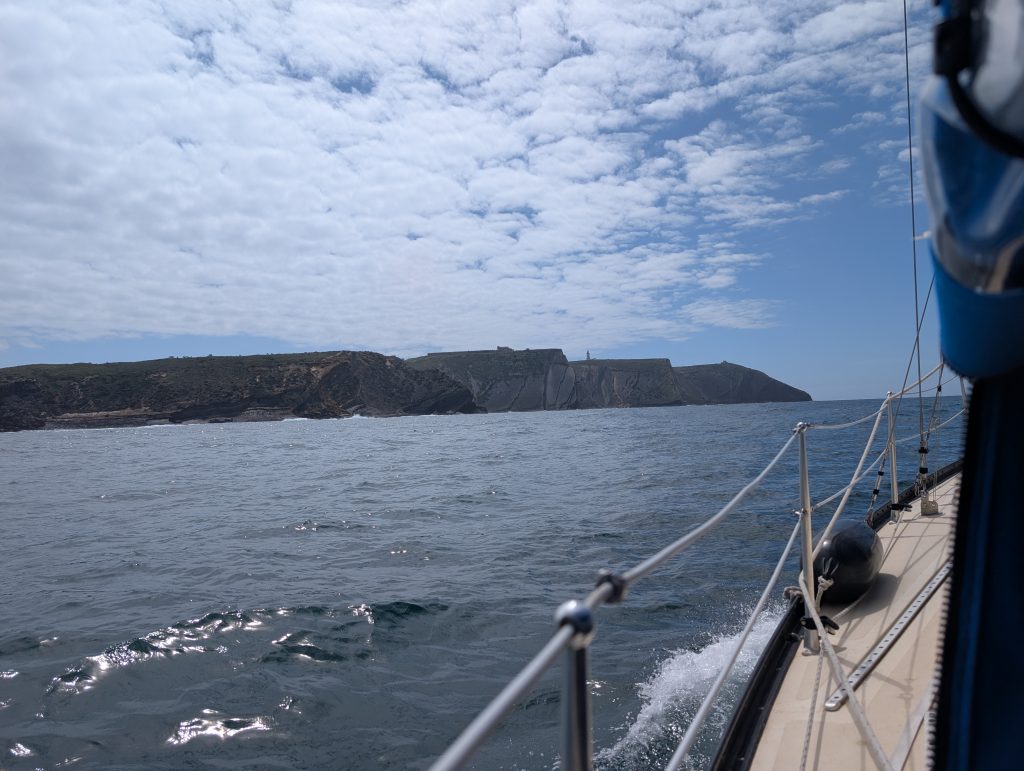 Zwei Tage später haben wir uns dann mit La Terza auf den Weg nach Sesimbra gemacht, das waren ca. 25 Seemeilen. Dort haben wir uns für eine Nacht im Hafen eingemietet um am nächsten Tag die fast 45 Seemeilen nach Sines zu absolvieren. Sesimbra ist ein schöner kleiner Ort der schnell erkundet ist. Erst einmal steht ein fast 30 minütiger Marsch auf dem Programm bis der Ort erreicht ist. Die kurze Zeit die uns zur Verfügung stand ist schnell vorbei und wir gehen wieder auf unser Boot. Wir wollen am nächsten Tag morgens gegen 7:30 Uhr los und etwas schlafen wollten wir vorher auch noch. Am 15. April um 6:00 Uhr klingelt der Wecker und um 7:00 Uhr checken wir im Hafen aus. Es dauert dann doch noch bis 7:50 bis wir tatsächlich ablegen und wir uns auf die neunstündige Fahrt machen. Zu Anfang ist die Welle sehr angenehm, unterwegs ist sie dann teilweise bei 2,5m, also unangenehm. So gegen 13:00 Uhr war der Wind tatsächlich so, dass wir die Genua ausrollen und den Motor drosseln konnten, ausschalten des Motors kam dann erst später. Als die Genua draussen war wurde die Bewegung im Boot etwas angenehmer, weil das Boot durch die Gegenkraft des Segels nicht mehr so hin und her geworfen wurde. Irgendwann haben wir die Genua noch verkleinert, die Geschwindigkeit blieb gleich, und kurz vor dem Kap haben wir die Genua dann geborgen um keine böse Überraschung zu erleben. Kurz danach ging es in den Hafen und es kehrte erstmal Ruhe ein. In Sines blieben wir dann 3 Übernachtungen bis die sehr große Etappe nach Sagres auf dem Plan steht. Sines ist eine Stadt die von viel Industrie geprägt ist. Allerdings gibt es auch einen alten Kern mit engen Gasse und alten Häusern, eine Festung fehlt natürlich auch nicht. Hier in Sines wurde der grosse Seefahrer Vasco da Gama geboren und darauf ist Sines sehr stolz. Sines liegt auf einem Berg, so dass man entweder eine Steigung oder Treppen bewältigen muss, der Aufzug war leider defekt.