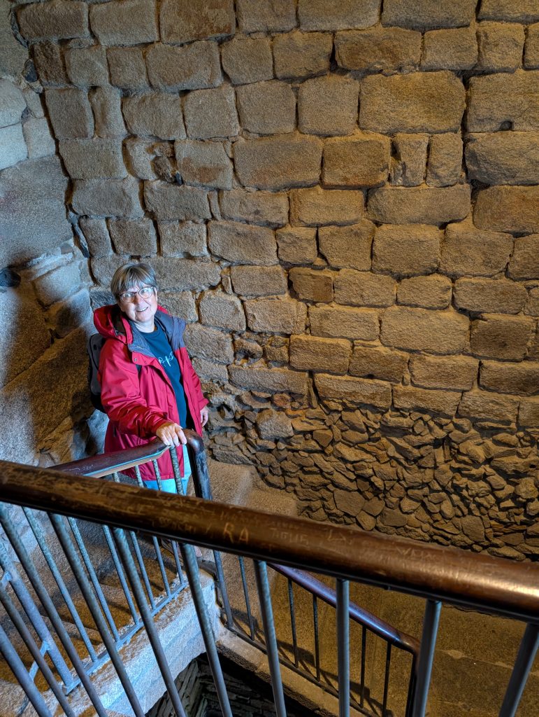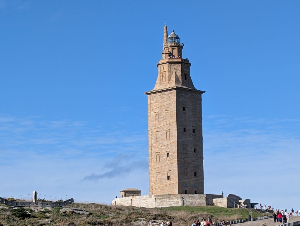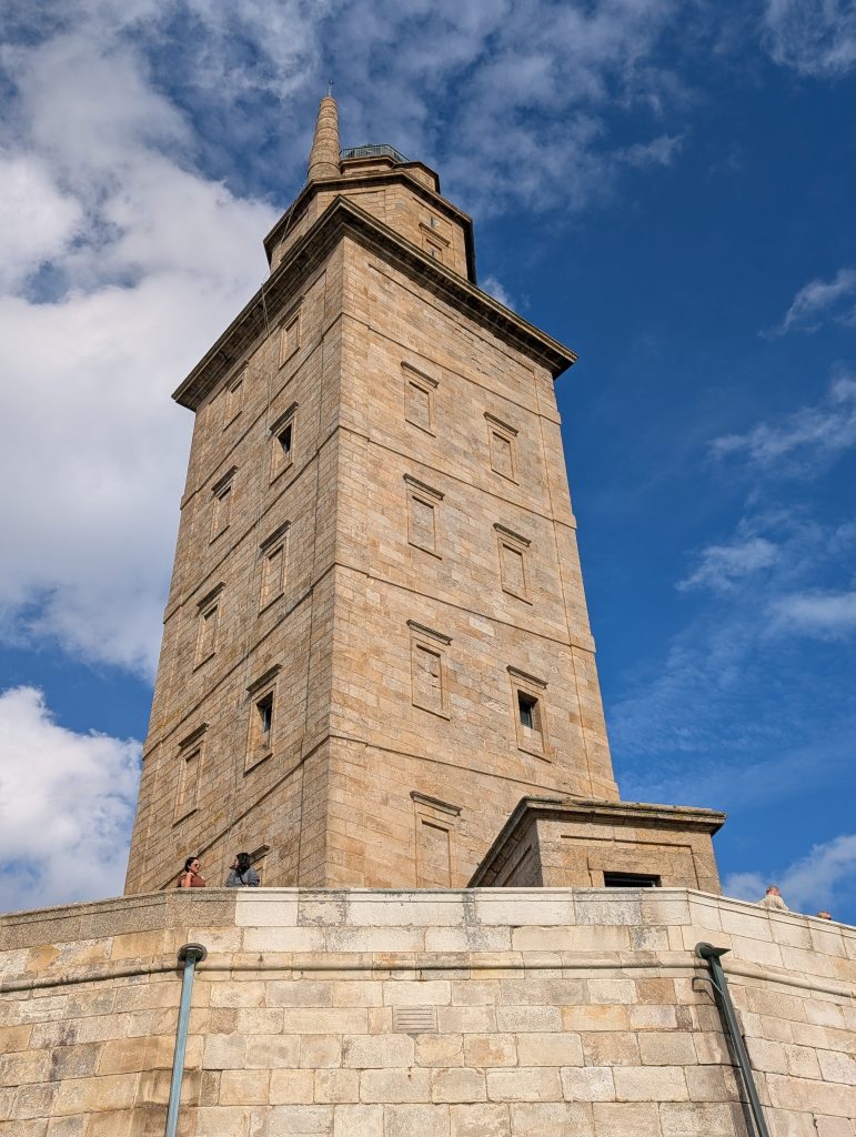 Hallo miteinander. seit Montag Abend 27.10.2025 sind wir in A Coruna und da wir uns die Stadt anschauen wollten, sitzen wir nun hier fest und das Wetter (Wind und Wellenvorhersage) spielt verückt, oder wir sind halt im Herbst am Atlantik. Momentan ziehen hier die Stürme nur so durch und wir haben (heute aktuell gemessen) bis zu 36 Knoten Wind im Hafen und dadurch natürlich auch Schwell im Hafen. Wir haben über die Tage die Leinen fast alle verdoppelt und zusätzliche angebracht um sicher zu liegen, damit La Terza keinen Schaden nimmt. Am Montag Abend sind wir mit David, der uns ja eine Zeit lang begleitet hat und anderen TO´lern beim Essen gewesen und es war ein schöner Abend. Bei Ben und Linda steht am Boot eine Überholung des Motors an und die zwei sind auch nicht zu beneiden. Wir sitzen hier wenn es stürmt auf dem Boot um bei eventuellen Schwierigkeiten sofort reagieren zu können. Allerdings finden wir natürlich auch Zeit um die sehr schöne Stadt zu erkunden und uns viele Dinge anzuschauen. Wir waren zum Beispiel in der Altstadt und haben uns die Sehenswürdigkeiten angeschaut. Unten sind einige Bilder dazu angehängt. Gestern am Montag 3.11.25 haben wir den Hercules Turm angeschaut, das ist der älteste noch in Betrieb befindliche Leuchtturm der Welt. Auf diesen Turm kann man hoch, nein es gibt keinen Aufzug, sondern es sind 243 Stufen die nach oben führen um als Lohn einen schönen Ausblick zu haben. Im unteren Bereich haben die Verantwortlichen einen Information über die Bauweise im Fundament eingerichtet und man sieht wie das aufgebaut ist.