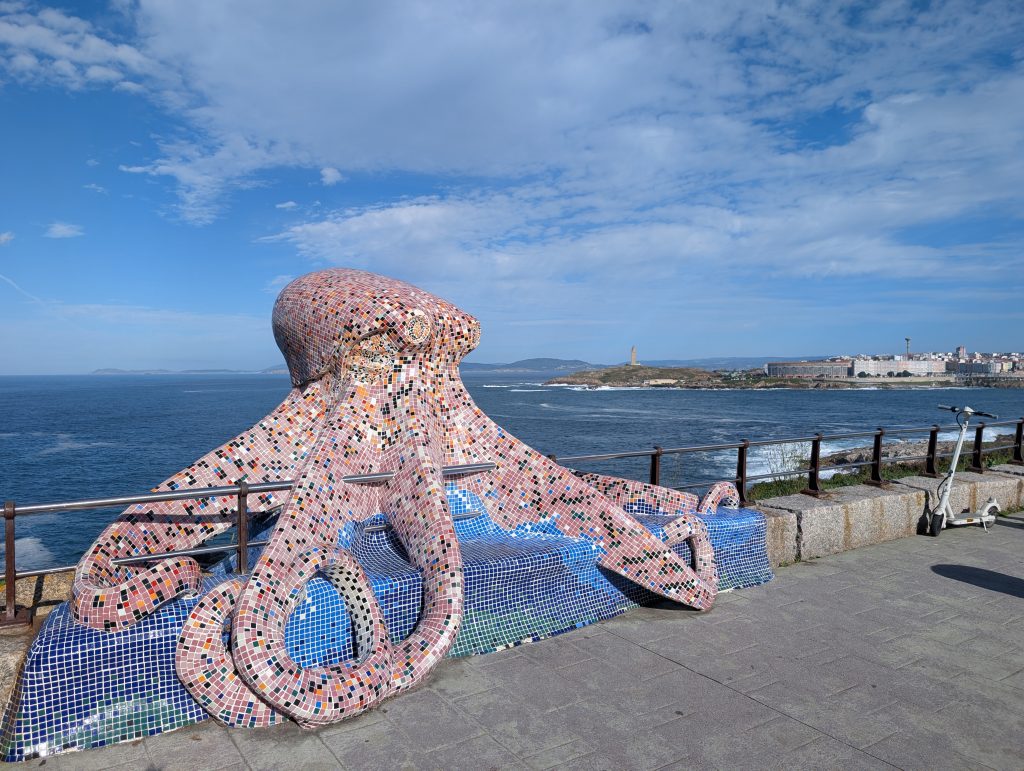 Danach sind wir entlang der Küste bist auf die andere Seite der Bucht zum Millenium Turm und dem Polbo (Octopus) gefahren (wir waren mit unseren E-Scootern unterwegs). Einige Streckenabschnitte mussten wir auch zu Fuß erlaufen, weil die Steigungen für die Roller zu viel waren, und in Fußgängerzonen ein Fahren nicht erlaubt ist. Heute war ein Tag auf dem Boot angesagt weil der Sturm tobt und uns viel Wind beschert hat. Die letzte Nacht war von mehreren Wachphasen geprägt und auch die folgende Nacht heute soll fast gleich werden. Morgen am 5.11.25 soll der Sturm sich etwas beruhigen um dem nächsten dahinter Platz zu machen. Wir denken, dass uns eine weitere Woche hier in A Coruna bevorsteht, aber Mitte nächster Woche könnte sich ein Wetterfenster auftun. Wir werden von Tag zu Tag sehen, und melden uns wieder wenn es Neuigkeiten gibt. Im Anschluss jetzt noch ein paar Bilder damit Ihr auch neidisch seid. Eure Teilzeit Seefahrer Andi und Heike.