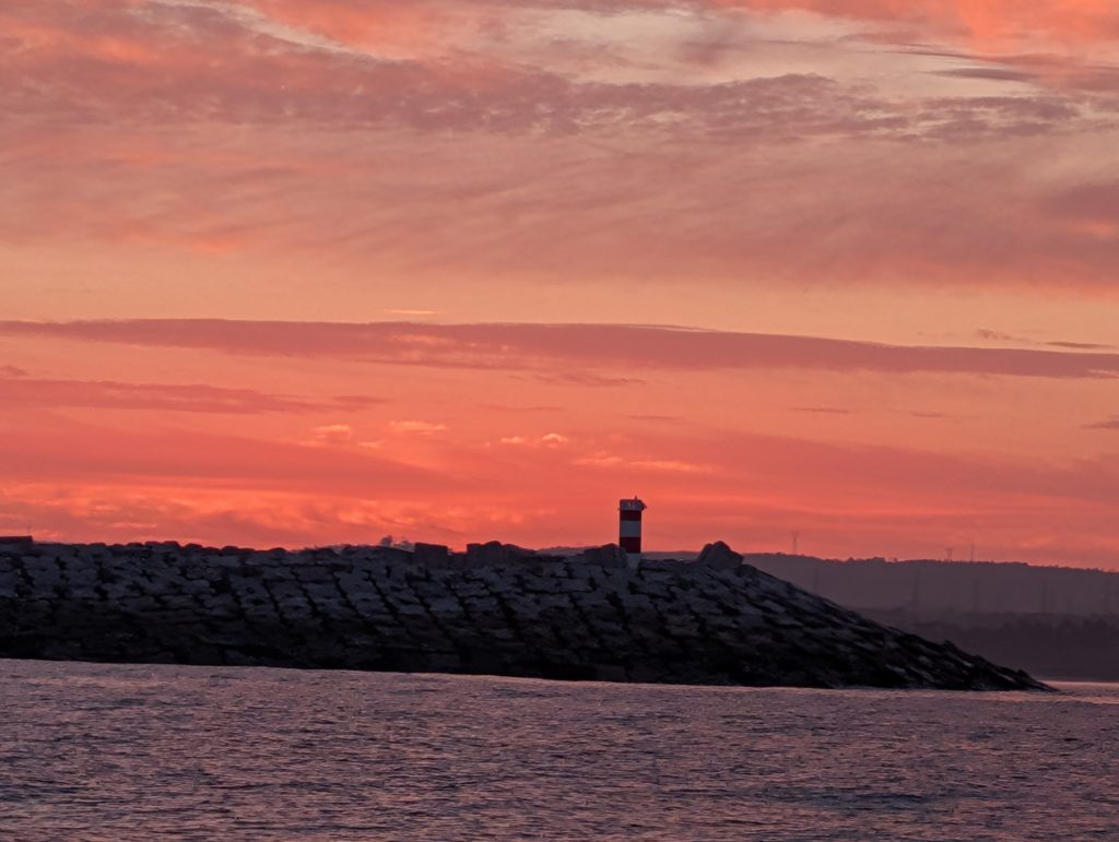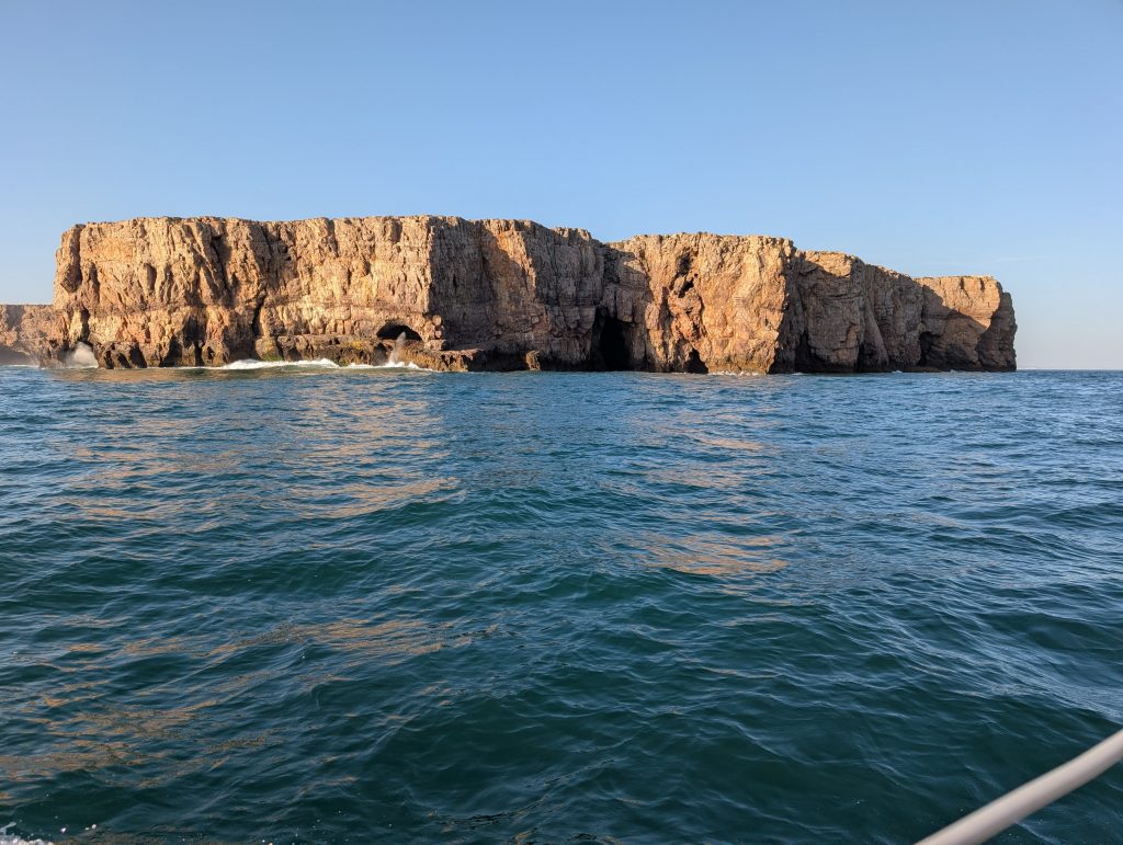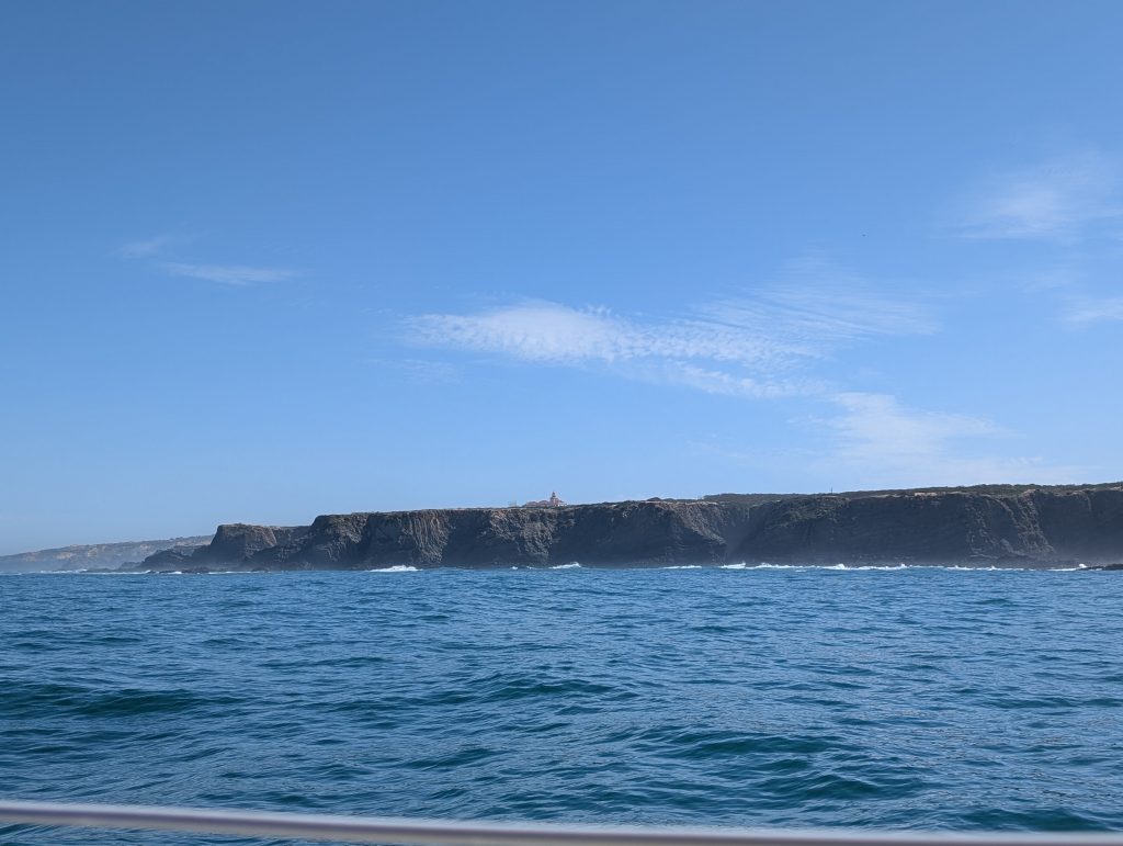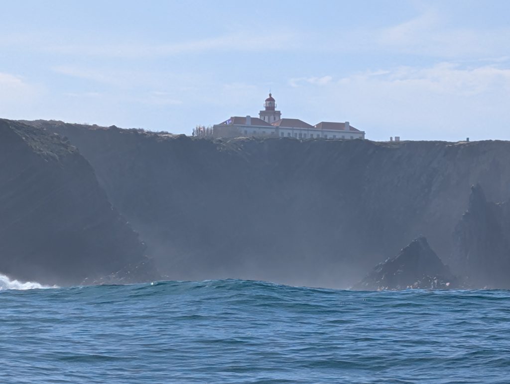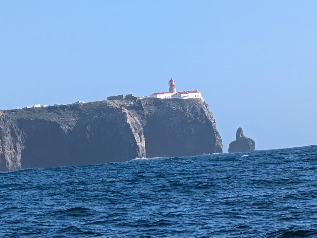 Hallo liebe Leser, wir haben es getan und wir haben es geschafft. Ich glaube dieser Törn hat den Skipper Andi um Jahre altern lassen. Ständig wurden die Wetterapps gecheckt, Wetterwelt hinzu gezogen, dann hat sich der Samstag 18. April als mutmaßlich guter Tag für den Törn herausgestellt. Im Hafen von Sines haben wir bis Freitag morgen einen Platz gebucht, damit haben wir uns diese Option auch noch offen gehalten den haben wir um einen Tag verlängert. Der anstehende Törn hat eine Länge von 65 Seemeilen, also etwa 13 Stunden Fahrt. Dabei muss das Wetter und die Bedingungen (Wellenhöhe) einmal am Abfahrtsort in Sines, während des Törns nach Süden, speziell dann die Bedingungen am Kap Sao Vicente und schließlich noch am Ankerplatz in Sagres passen. Die Bedingungen am Kap Sao Vicente, das ist übrigens der südwestlichste Punkt des europäischen Festlands, dort kann es richtig ekelhaft sein, weil es dort starke Fallwinde geben kann. Die Windgeschwindigkeit kann dort von 10 Knoten Wind, plötzlich auf 30 Knoten Wind ansteigen und ehrlich gesagt das kann einen schon in beträchtliche Schwierigkeiten bringen. Aber am Samstag waren die vorhergesagten Bedingungen im grünen Bereich und wir haben den Wecker auf 4:30 gestellt, damit wir wie geplant gegen 6:00 Uhr ablegen können. Sonnenaufgang ist zwar erst um 06:30, aber bis wir aus dem Hafen raus sind, sollte es langsam hell werden. Wir haben dann doch noch 15 Minuten gewartet, da es recht diesig war. Die Bedingungen waren wie erwartet gut, obwohl der Wind zu schwach und aus der falschen Richtung kam. Uns blieb nichts anderes übrig als die tolle vorbeiziehende Landschaft zu bewundern. Stunde um Stunde verging und nach etwa 10 Stunden stieg die Anspannung nochmal an, eigentlich hätte es für heute gereicht, aber das Kap stand uns ja noch bevor. Die Umrisse werden deutlicher und man sieht die Gebäude oben auf dem Fels. Eigentlich sieht es gut aus, weil über dem Kap keine Wolken zu sehen ware. Vielleicht haben wir ja Glück und haben einen guten Tag erwischt. Wir warteten jede Minute auf den Wind, aber er blieb aus, warum sollten wir nicht auch mal Glück haben und alles läuft wir geplant. So, um das Kap waren wir rum und jetzt ging es zum Ankerplatz. Da dieser in der Landabdeckung lag sollte die Welle eigentlich klein und der Wind schwach sein. Irgendwer war gegen uns, der Wind war zwar schwach aber die Welle hat uns hin und hergeworfen und kam aus einer ganz anderen Richtung wie vorhergesagt. Der Anker wurde gesetzt aber wir fragten uns, ob wir in dieser Nacht wohl schlafen können. Es hilft ja nichts es muss gehen. Zum ganzen Übel kam nachts noch starker Nebel und ein spät eintreffender Karamaran hat sehr nah bei uns geankert. Wir haben das nachts noch beobachtet, alles scheint gut zu sein und wir haben den Wecker mal auf 7:30 Uhr gestellt. Als wir dann aufgestanden sind, haben wir vor lauter Nebel unsere Hand vor den Augen nicht gesehen. Da könnnen wir nicht los. Also machen wir Frühstück und warten mal ab was passiert. Tatsächlich haben wir bis 11:00 Uhr gewartet und sind dann los die kurze Strecke nach Portimao in Angriff zu nehmen. Was wir da erlebt haben schreiben wir im nächsten Blog.