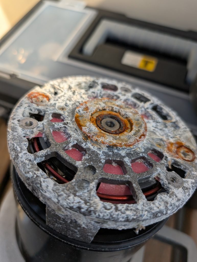 Etwas Korrosion gibts halt immer, eigentlich ist das dicht wenn die Abdeckung drauf ist. Vielleicht haben wir die Montagswinsch erwischt, unter der Abdechung dann die Überraschung.