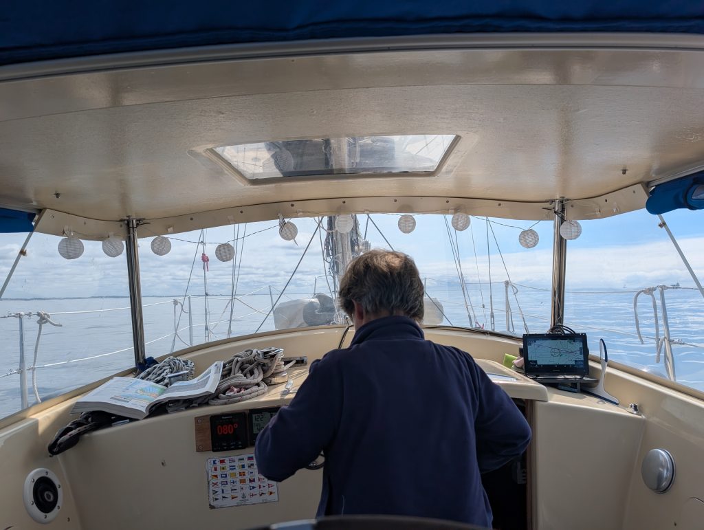 So geht es bei uns an Bord zu wenn wir unterwegs sind. Ich bin für die Bootssteuerung zuständig, Heike macht den Kartenplotter und die Papierkarten, und die Hafenpläne, hier nach Port Louis.