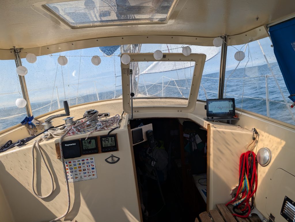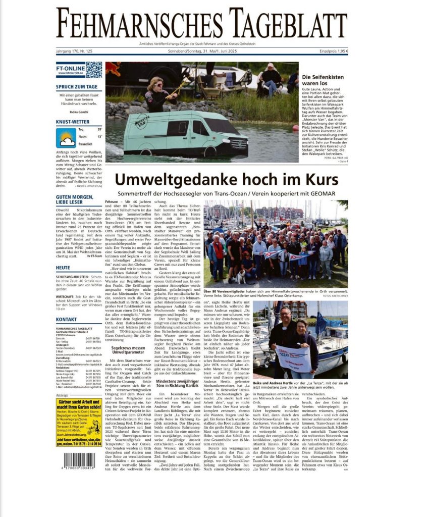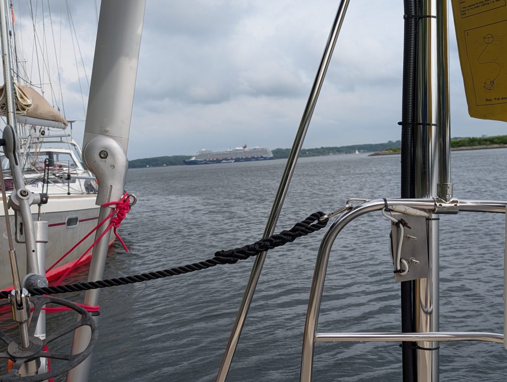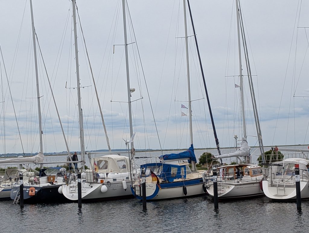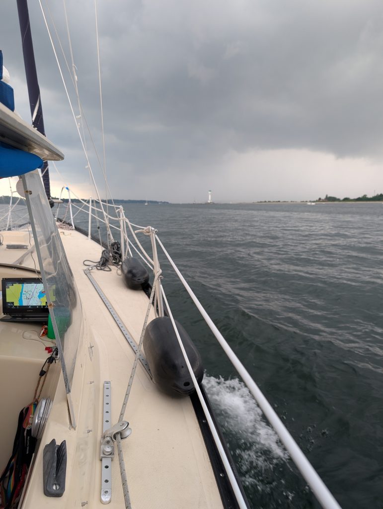 Am Mittwoch den 28. Mai sind wir nach Orth auf Fehmarn gefahren und haben dort einen der reservierten Liegeplätze bezogen. Wir haben uns für das Sommertreffen der TO (Trans Ocean) angemeldet, das findet traditionell in Orth auf Fehmarn statt. Wir hatten da dann noch etwas Zeit für Arbeiten am Boot und haben diese Zeit ausführlich genutzt. Am Donnerstag war der Hauptanreisetag und es gab immer wieder Begegnungen mit interessanten Gesprächen. Am Freitag morgen wurde das Treffen offiziell eröffnet und es gab viele Informationen zum Ablauf und Terminplan. Dabei wurden wir aufgerufen und als Lossegler vorgestellt. Dies hat ein Reporter des Fehmarner Tagblatt mitbekommen und wollte mit uns reden, auch unser Boot sehen und hat dann mit uns beiden noch ein Foto gemacht. Ich habe schon überlegt was der immer an seinem Handy macht, aber das war ein Diktiergerät mit dem er alles aufgenommen hat was wir erzählt haben. Daraus entstand dann ein Bericht der dann in der Zeitung gedruckt wurde. Abends des Freitag wurde dann gegrillt und interessante Gespräche geführt. Am Samstag gab es dann die Vorstellung eines Rettungsmanöver für kleine Crews um eine über Bord gegangene Person wieder an Bord zu bekommen, eine wirklich interessante Sache dieses Manöver. Nachmittags gab es für eine Gruppe eine Brauereibesichtigung und für die Anderen eine Wanderung zum Leuchtturm Flügge. Wir waren am Leuchtturm mit dabei. Bei der Verabschiedung als Lossegler haben wir dann von der Geschäftsführerin der TO einen Kescher bekommen um Müll aus dem Meer zu fischen, wenn er uns begegnet (das ist ein Aktion der TO unter dem Motto „Catch of the day“). Am Samstag Abend gab es dann noch einen tollen Vortrag von Burkhard Pieske (das ist ein Typ zum Brüllen) über ein Segelabenteuer welches er erlebt hat. Am Sonntag morgen wollten wir um 8:00 Uhr ablegen um nach Kiel zu fahren, just in diesem Augenblick ist ein Gewitter über den Hafen gezogen, da blieben wir erst mal da. Nach dem der Regen etwas nachgelassen hatte sind wir los. Am Anfang sind wir unter Motor gefahren, später dann mit der Genua und später dann wieder unter Motor als der Wind wieder nachgelassen hatte. In der Kieler Förde zog dann ein Regen über das Wasser, ich hab den Motor gedrosselt um das mal vorbeiziehen zu lassen. Gerade als ich gedacht hatte, dass es wohl funktioniert hat, ging es erst richtig los. Einiges über 20 Knoten Wind und der Regen in der Waagerechten, ich war innerhalb einer halben Minute klatschnass und war dementsprechend bedient. Wir haben dann hier neben der Schleuse in Kiel Holtenau am Gästesteg festgemacht und morgen geht es dann rein in den NOK (Norf-Ostsee-Kanal). Das wird bestimmt eine aufregende Nummer, aber dazu das nächste Mal, wahrscheinlich am 3. oder 4. Juni, jetzt wird erst mal zwei Tage motort. Anschließend noch ein paar Bilder zum neidisch werden. 🙂