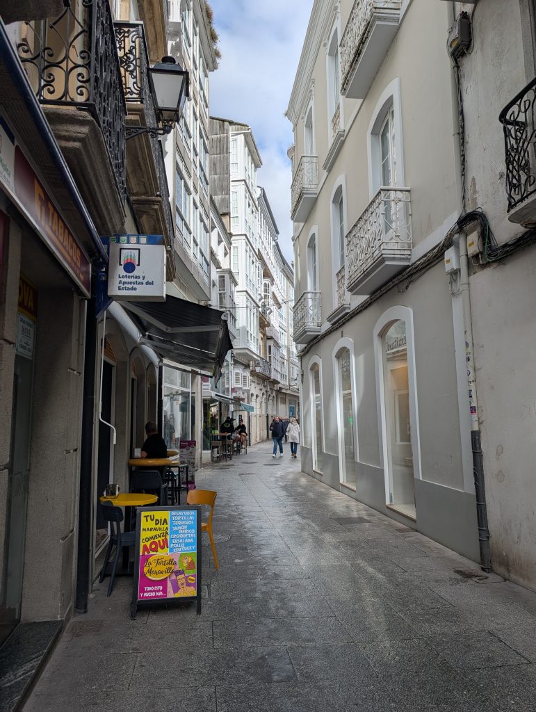 Hallo liebe Leser, wir sind am 17.10.25 morgens gegen 9 Uhr von Luarca aufgebrochen, gekostet hat die Nacht an der Boje nichts. David hatte noch eine Videokonferenz, deshalb sind wir schon mal losgefahren und haben die 22 sm in Angriff genommen. Hier lief alles glatt, nur der Wind war halt mal wieder nicht da. um 13:45 Uhr waren wir in Ribadeo und bekamen einen Liegeplatz zugewiesen, der sollte sich noch als gut herausstellen. Wir haben uns bei der Capitanerie angemeldet und der Platz sollte nur 16,33 Euro kosten und der fünfte Tag ist umsonst. Super, weil wir ja vermutlich einige Tag hier sein werden. Als David nachkam und seinen Liegeplatz neben uns bezogen hatte, gingen wir noch nach Ribadeo in die Stadt und haben uns mal umgeschaut. Da ging es steil den Berg hinauf und wir kamen etwas ausser Atem. Es gibt dort eine Fußgängerzone mit vielen Geschäften und Restaurants. Im Sommer ist das wohl ein Urlaubsort für die Spanier. Nachdem wir wieder im Hafen waren, hatte sich David entschieden am nächsten Morgen um 4 die Leinen los zu machen und nach A Coruna durchzufahren, sind mal locker 80 sm und dauert etwa 16 Stunden. Wir blieben trotzdem in Ribadeo um auf den heranziehenden Sturm zu warten und waren bereit, uns Ihm entgegen zu stellen und dort abzuwettern. Zum Abschied tranken wir zu dritt noch eine Flasche Wein, dann ging es in die Kojen und David ist tatsächlich gegen 4 Uhr los. Wir haben ausgeschlafen und sind anschließend zum Einkaufen gegangen, wir wussten ja nicht wie wir unser Boot alleine lassen konnten. Morgens am Samstag nach der Ankunft kam ein junger Mann zu uns ans Boot und hielt mir eine goldene Marke unter die Nase, es war ein Beamter vom Zoll, wir baten ihn an Bord und legten unsere Dokumente vor, es war alles in Ordnung und wir waren beruhigt als er wieder weg war. Am Dienstag 21.10.25 haben wir dann unser Boot sturmfest gemacht, zusätzliche Leinen ausgebracht und die Segel nochmals gründlich verschnürt. So der Wind kann kommen. Da wir in einer Einzelbox mit einer Breite von 4,3m lagen konnten wir La Terza in die Mitte legen und somit hielten wir sie vom vom weg Steg an welchem sie Schaden nehmen könnte. Wir hatten am Mittwoch im Hafen etwa 32 Knoten Wind als Maximum, wie man aus der Presse erfahren konnte waren andere Teile von Frankreich wesentlich härter getroffen, auch La Rochelle hat eine Sturmflutwarnung heraus gegeben und alle angeschrieben Sie sollten sich um Ihr Boot kümmern. Während der selben Zeit waren noch zwei junge Franzosen mit Ihrem Boot im Hafen, das war geschätzt so 7,5 m lang. Unerschrocken und vielleicht noch etwas grün hinter den Segelohren sind die beiden am Freitag nach dem Sturm in Ribadeo losgefahren, obwohl ich Ihnen gesagt habe, dass ich das nicht machen würde. Über zwei Meter Welle, mit dem Boot, keine Chance. Wir haben immer wieder die Wetterdaten angeschaut und uns dann entschlossen, am Samstag hinterher zu fahren, weil die Wellenhöhe und der Wind eigentlich gut aussahen und es möglich ist. Es sollten 32 sm sein, wir also am 25.10.25 um 9:15 Uhr los und zuerst war alles gut, wir kamen gut aus der Bucht raus, aber dann wurde es von Stunde zu Stunde schlechter, die Welle baute sich bis 3 Meter auf und La Terza und die Crew gaben ihr Bestes. Hoch die Welle und auch wieder runter, das Wasser spritze über das Deck und wir waren mal wieder froh an unserer selbst gebauten Kuchenbude die alles von uns abhielt. Nach einem ungemütlichen Trip kamen wir um 16:30 Uhr in Viveiro an und machten im Hafen fest. Hier liegt man wie in Abrahams Schoß und wir konnten die Nacht sehr gut schlafen Am nächsten Tag waren wir in Viveiro zum Sight Seeing, ein wirklich schöner Ort mit einem alten Ortsteil wie man auf den Bildern sehen kann. Am Montag wollten wir aufgrund der guten Wetterdaten (ausser dem Wind), die Fahrt nach A Coruna wagen, das sind 10-11 Stunden und immer schön in Richtung der Orcas. Also am 27.10.25 morgen raus aus dem Bett wir wollten um 6 Uhr los, es wurden 15 Minuten später. Es war noch dunkle Nacht kein Mond der die Gegend etwas erhellen könnte, durch den Kanal raus in die Bucht. Gott sei Dank haben wir einen Kartenplotter der uns den Weg zeigt, sonst wirklich schwierig. Als wir dann die Bucht von Viveiro verließen, machte sich am Horizont der Morgen bemerkbar, und am Horizont ging dann später die Sonne auf. Wir haben uns wegen den Orcas immer schön in der Nähe der Küste gehalten, waren da teilweise noch 200 Meter von den Felsen weg, ein mulmiges Gefühl kann ich bestätigen. Kurz nach 16:00 Uhr, in weniger als 10 Stunden, liefen wir in den Hafen in A Coruna ein, mussten nur noch an dem Kreuzfahrtschiff vorbei. Im Hafen festgemacht und angemeldet ging es Abends noch mit anderen TO´lern in die Stadt um etwas zu essen, es war sehr lecker und kurz vor Mitternacht ging es in die Koje. Vermutlich werden wir hier einige Zeit sein, weil wieder mal das Wetter verrückt spielt. Es soll wieder viel Wind geben, schlimmer sind aber die Wellen die sich beruhigen müssen und das kann dauern. Wir melden uns mal zwischendurch mit einem kurzen Blog wie es uns geht und wir die Tage Sturm überstanden haben. Bis bald.