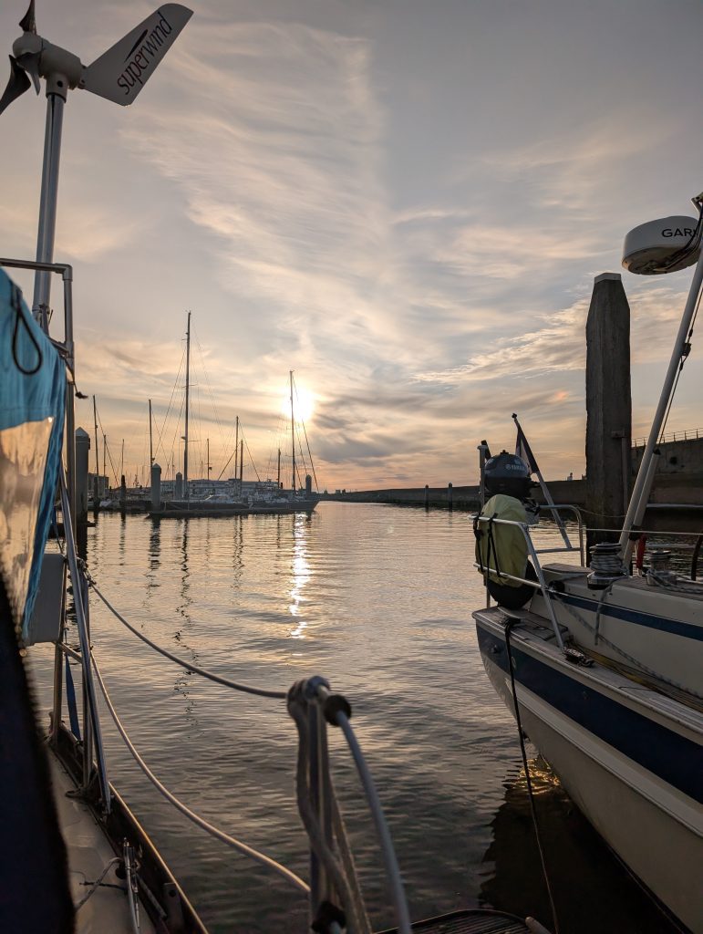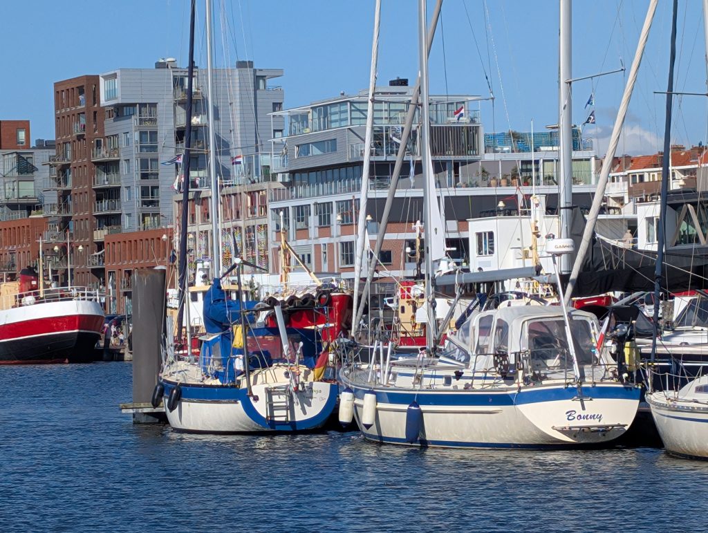 Am 25.6. sind wir in Den Helder aufgebrochen um nach Ijmuiden zu fahren. Hierbei hatten wir eine so schlechte Windrichtung, dass es letztendlich nicht möglich war zu segeln, entgegen der Vorhersage. Bei einem Schlag um etwas Höhe zu gewinnen, haben wir am eigenen Leib erfahren müssen was Strömung ist, es hat uns bestimmt eine Seemeile wieder zurück geschoben und wir sind dann das letzte Stück wieder unter Motor gefahren. Bei der Hafenzufahrt kamen uns dann noch 4 große Pötte in die Quere, von denen haben wir uns dann schön fern gehalten. Zuerst ein Kreuzfahrtschiff dann noch zwei andere grosse Frachtschiffe und zum Schluss der RoRo Tanker mit zusätzlichen Passagieren. Schließlich in der Marina angekommen war es schon nach 18 Uhr und wir haben den Abend gemütlich mit der Bonny verbracht, ja ihr hört richtig wir sind noch in der Flotille mit der Bonny. Wir haben den Hafenplatz zuerst mal für eine Nacht gebucht, dann aber aus Gründen des Windes nochmals zwei Tage hinzu. Am Abend des Donnerstag 26.06. haben wir nach reichlichen Überlegungen entschieden den zweiten Tag verfallen zu lassen und sind am Freitag Morgen in Richtung Scheveningen aufgebrochen. Die Windvorhersage hat uns ein Wetterfenster bis 14 Uhr vorher gesagt und das wollten wir für die 26 sm nutzen. Wir sind am Freitag morgen dann um 6:00 Uhr aus dem Hafen raus und spürten dann so eine Stunde später den Strom in unsere Richtung. Weil der Wind so schwach wehte war an Segeln nicht zu denken, zumal wir Zeitdruck hatten. Etwa 3 Semeilen vor Scheveningen hat dann der Wind zugenommen das war so gegen 10:30 Uhr (nicht 14 Uhr wie die Vorhersage). Die Hafeneinfahrt nach Scheveningen ist bei Seitenstrom und starken Winden aus Südwest etwas unangenehm bis stressig. Wir hatten Strom genug, den Wind aus Südwest und auch eine unangenehme Welle von etwa 1m und mehr, den Rest könnt ihr euch vorstellen, zumal man nicht weiß wo man hin muss, völlig unbekanntes Terrain. Nach ein paar Schweißtropfen später, waren wir dann im sicheren ersten Hafenbecken und dann noch um ein paar Ecken rum bis zum Ponton wo wir vom Hafenmeister schon erwartet wurden. Wir haben im Anschuss dann mal Scheveningen etwas erkundet, den örtlichen Yachtausrüster um Waren erleichtert und sind vorne am Strand noch etwas trinken gewesen, die haben Preise da tränen einem die Augen. Gestern am 28.6. waren wir den ganzen Tag in Den Haag die Hauptstadt von Holland. Die Stadt ist sehr schön immer wieder eine Graacht mit kleinen Booten und es war jede Menge los in der Stadt. Ein Tag ist definitiv zu wenig, aber wir wollten ja weiter. Am Abend haben wir dann mit der Crew von der Bonny, noch etwas getrunken und den Schlachtplan für den nächsten Tag ausgehandelt, aber dazu im nächsten Blog mehr. Im Anschluss noch einige Bilder, welche unsere Eindrücke schildern.
