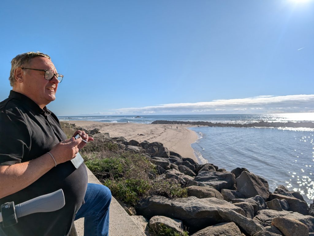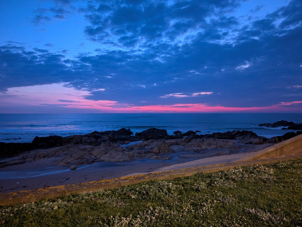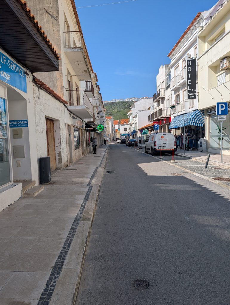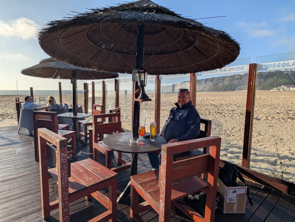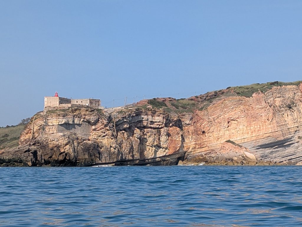 Hinter diesem Felsen liegt links Nazaré. Von diesem Ort werden immer die spektakulären Bilder der riesigen Wellen geschossen.