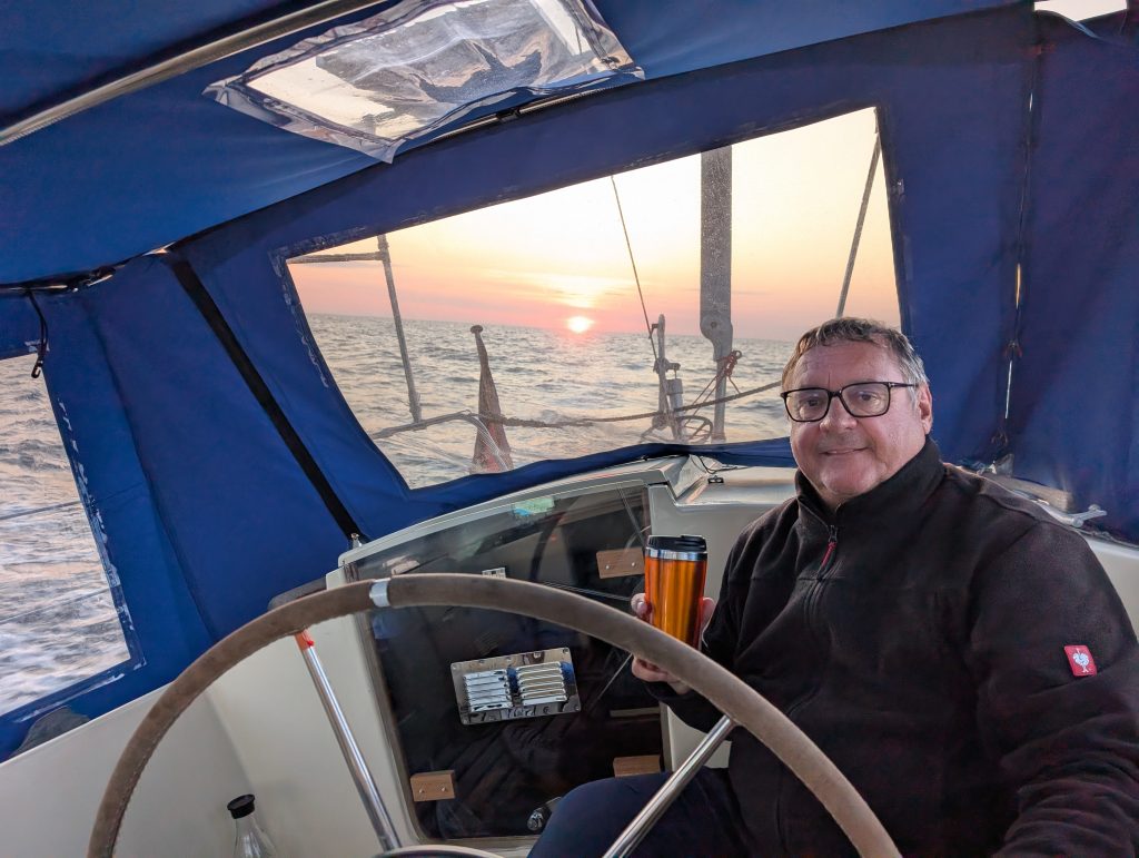 Um 17:00 Uhr haben wir dann Abgelegt und es stand ein langer Trip auf dem Plan. Das Ziel war Den Helder in Holland, also einmal um alle Westfriesischen Inseln rum. Die Planung am PC sagte 90 Semeilen, und bei kalkulierten 4 Seemeilen pro Stunde kamen wir auf 22 bis 24 Stunden Reisedauer, also Ankunft am nächsten Nachmittg, Nachtfahrt stand auf dem Plan. Bis wir aus dem Fahrwasser von Borkum raus waren und uns im Seeraum frei bewegen konnten waren fast die erste zwei Stunden schon mal rum. Dann die Segel raus, wir hatten wie angesagt den Wind von schräg hinten, also einen raumen Wind, Wir kamen sehr gut vorwärts und gegen 21 Uhr haben wir unsere Navigationslichter eingeschaltet, der Sonnenuntergang kam näher und die Nachtfahrt beginnt. Die Nachtfahrt verläuft problemlos und gegen 5 Uhr geht die Sonne auf und es wird Tag. Wir sind jetzt 12 Stunden unterwegs aber es liegen noch etwa 12 Stunden vor und. Wir müssen vor Schiermonnikoog und auch vor Ameland und Terschelling zwei Naturschutzgebieten ausweichen und bei Vlieland und Texel gibt es ein militätisches Schutzgebiet, da bleibt man besser draussen. Das kostet Zeit und bringt Seemeilen auf die Uhr. Bis kurz vor der Einfahrt ins Molengatt bei Texel sind die Segel oben, das ist so gegen 14:00 Uhr dann geht der Motor an. Wir orientieren uns an den gelben Bojen MGA bis MGH (so sind diese auch in den Seekarten eingetragen). Um 16:00 Uhr, nach 23 Stunden laufen wir in den Hafen von Den Helder ein, die Junia hat schon Plätze für die zwei anderen Boote La Terza und Bonny ergattert, und wir legen an. Nach dem Besuch beim Hafenmeister (Platz bezahlen) ist bei allen die Luft raus und wir gehen um 19:30 Uhr ins Bett um 12 Stunden später wieder aufzuwachen. Während des Frühstücks zeigt unser Windmesser 25 Knoten Wind an, so ist es wohl besser im Hafen zu bleiben. Die nächsten Tage sind kein Wetter zur Weiterfahrt, also bleiben wir zuerst mal hier. Unsere französischen Freunde wollten die Tage weiter fahren um in Dunkerque Familie zu besuchen. Wegen dem Nato Gipfel geht das nicht, weil der Seeraum zwischen Rotterdam und Noordwijk gesperrt ist, und das bis Freitag, so ein Mist. Dann rückt der Abschied von zwei tollen Segelkameraden näher, es war sehr angenehm mit Jean-Luis und Carmen. Wir setzen unsere Reise dann mit Julia und Frank fort.