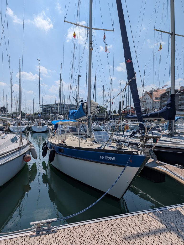 Am Sonntag den 29.6.25 sind wir um 16:30 Uhr in Scheveningen aufgebrochen, zusammen mit der Bonny unseren französischen Freunden, mit dem Ziel Zeebrügge. Wieder einmal wollen wir über Nacht zu unserem Ziel fahren. Warum macht man eine Nachtfahrt eigentlich? Bei einer Strecke von etwas über 60 Seemeilen kommt man auf eine Fahrzeit von 13-15 Stunden, das ist an einem Tag nicht zu schaffen. So fährt man am Abend vorher los, segelt über die Nacht und kommt zu einer Zeit am Ziel an, wo es im Hafen noch etwas entspannter zugeht und es noch Liegeplätze gibt. Wir kalkulieren unsere Fahrtzeit immer mit einer Geschwindikeit von 4 Knoten, was unserem Boot entspricht, also 60 Seemeilen geteilt durch 4 sind 15 Stunden, das wäre die ungefähre Fahrtzeit. Geht es dann mal etwas zügiger voran, ist man früher da, hat aber hinten hinaus auch noch einen Zeitpuffer falls es mal länger dauert. Also sind wir in die Nacht hineingesegelt, an Rotterdam vorbei, da wurden wir von Port Control das erste mal angefunkt ob wir die großen Schiffe auch sehen und wie die uns passieren wollen. Natürlich haben wir die im Blick und aus Sicherheitsgründen haben wir bei schwächerem Wind mal das Vorsegel weggerollt und den Motor angeworfen. Nach einer Stunde stellte sich der Wind wieder ein und wir sind ganz entspannt nur mit dem Grosssegel durch die Nacht gesegelt mit bis zu 5.5 Knoten, Motor war wieder auf leise. Nach dem Sonneaufgang wurde dann die Genua wieder ausgerollt und es ging flott voran. Dann klingelt das Telefon und unsere französischen Freunde rufen an. Sie sind schon vor Zeebrügge und berichten, dass das Einlaufen dort ein riesen Aufwand ist. Dort muss man Port Control über Funk anrufen und fragen ob man einlaufen darf oder ein großes Schiff Vorang hat. Jean Louis hat dann angeregt doch bis Nieuwpoort weiter zu fahren. Wir waren gleich dabei (dazu ist der beschriebene Puffer da), und weiter ging die wilde Fahrt. Auf dem ersten Bild sieht man die MS Deutschland, das Traumschiff aus dem Fernsehen. Wir waren dann um 12:30 Uhr am Montag 30.6. im Hafen von Nieuwpoort und haben dort eingecheckt. Nach einer ausgiebigen Dusche und etwas Ausruhen, haben wir auf der Bonny noch etwas getrunken und sind dann in das Bett gefallen, das uns dann 12 Stunden nicht mehr los wurde. Direkt nach dem Frühstück, am 1.7. sind wir zwei nach Nieuwpoort gelaufen und haben die Umgebung erkundet (unten sind dann ein paar Bilder wie es hier aussieht). Am späten Nachmittag haben wir dann nach dem Einkauf bei Aldi gekocht, Jean Louis und Carmen kommen heute Abend zum Essen. Heute am 2.7. haben wir unsere Elektroroller wieder aktiviert, in Holland sind die nicht erlaubt, aber jetzt sind wir ja in Belgien. wir haben uns noch mit Getränken und Lebensmitteln eingedeckt, weil der Lebensmittelmarkt in unmittelbarer Nähe liegt, und waren im Yachtzubehör Shop. Jetzt sitzen wir auf dem Boot, es regnet und ist grau, irgendwo grummelt ein Donner. Der Plan ist, morgen vormittag die 30 Seemeilen bis nach Dunkerque in Angriff zu nehmen, dann sind wir in Frankreich. Von dort aus melden wir uns wieder, je nachdem wie Zeit ist den Blog zu schreiben.