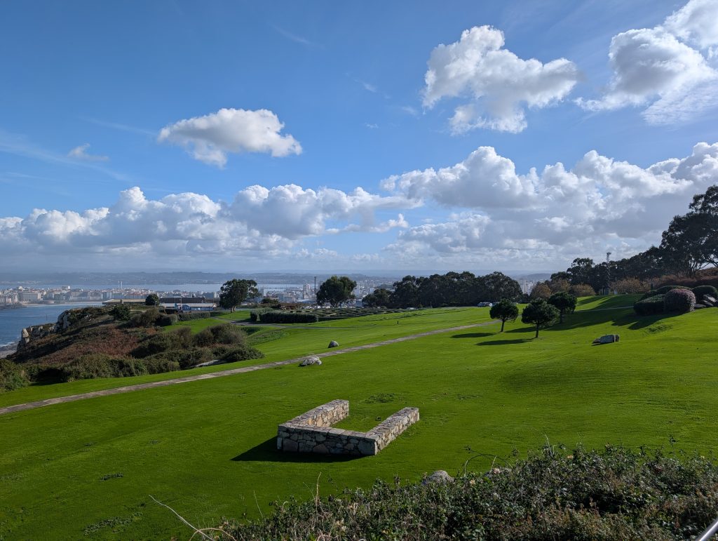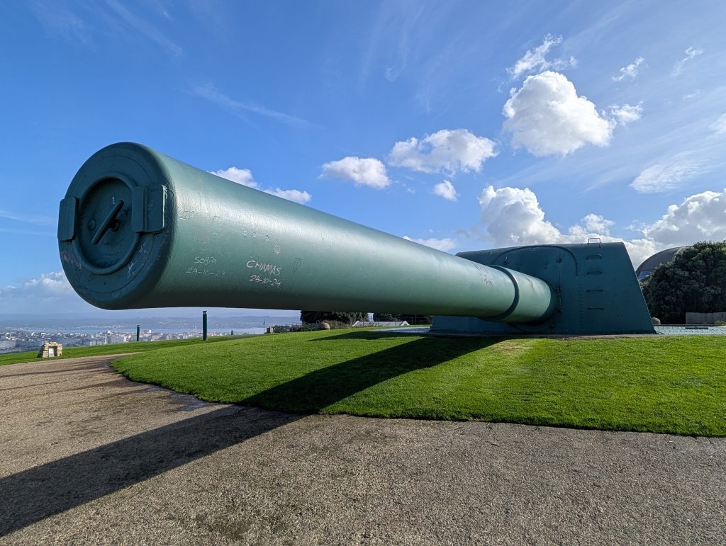 Hallo miteinander, wir sind immer noch in La Coruna und sind es wahrscheinllich noch eine Woche. Die Herbststürme lassen uns einfach nicht weg hier. Es scheint aber auch ein extremes Jahr zu sein, weil auch andere Segler, Wetterbedingungen erleben, die Sie so noch nicht erlebt haben, und wir reden hier von sehr erfahrenen Seglern und Seglerinnen. Die Stürme die hier toben bringen viel Wind und hohe Wellen mit sich, die eine Weiterfahrt einfach nicht möglich machen, zumal wir hier in einer Region sind, die nur bei guten Bedingungen gesegelt werden sollte, und wir haben ja noch die Orcas, die uns auch beschäftigen. So versuchen wir aus der Situation das Beste zu machen und schauen uns hier um. Am Samstag 8.11.2025 waren wir mit Bekannten am Monte de San Pedro verabredet und haben uns dieses wunderschöne Gelände angesehen. Früher wurde von dort oben die Einfahrt nach La Coruna geschützt heute ist dort oben ein Park entstanden der sehr schön angelegt und gepflegt ist. Natürlich stehen dort auch noch die Geräte aus der Zeit in der man sich schützen musste, aber das gehört zur Geschichte dazu.